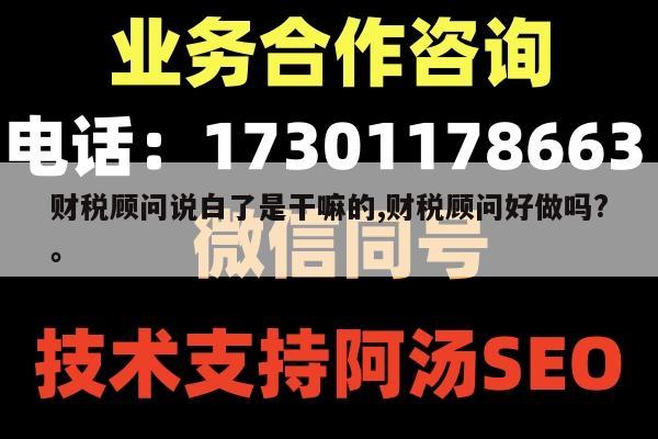 本篇文章给大家谈谈财税顾问说白了是干嘛的 ,以及财税顾问好做吗?对应的知识点,希望对各位有所帮助,不要忘了收藏本站喔。