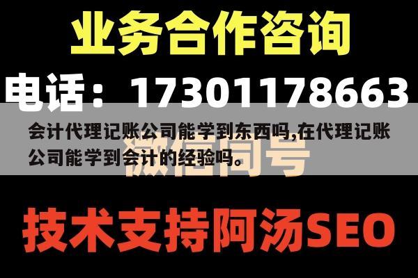 今天给各位分享会计代理记账公司能学到东西吗的知识,其中也会对在代理记账公司能学到会计的经验吗进行解释 ,如果能碰巧解决你现在面临的问题,别忘了关注本站,现在开始吧!