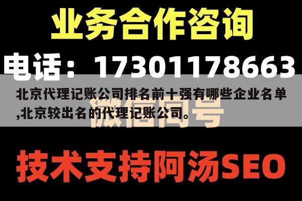 今天给各位分享北京代理记账公司排名前十强有哪些企业名单的知识,其中也会对北京较出名的代理记账公司进行解释,如果能碰巧解决你现在面临的问题 ,别忘了关注本站,现在开始吧!